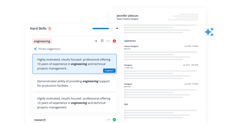 One-Click Optimize's phrase generator creates phrases based on your skills, ensuring your resume highlights key qualifications to match the job.